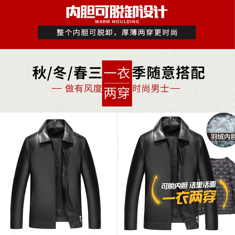Thin section Haining sheepskin leather leather coat men's leather jacket jacket large size spring and autumn dad outfit liner down jacket
