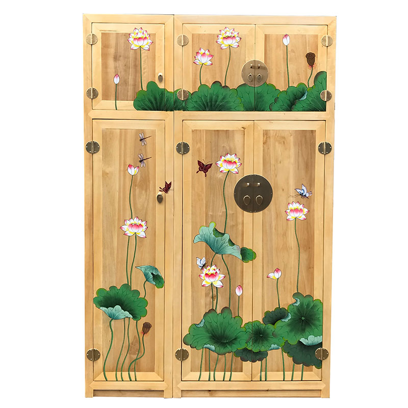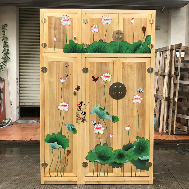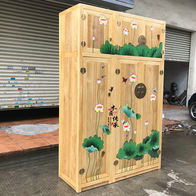 New Chinese style solid wood wardrobe Camphor wood top box cabinet Full camphor wood bedroom storage cabinet Antique painted wardrobe moisture-proof