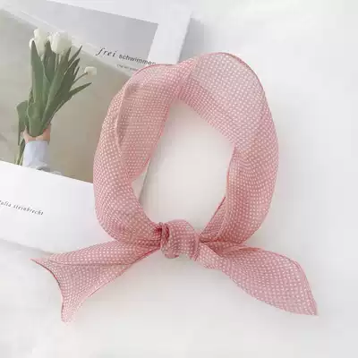 Simple chic Korean small silk scarf imported spot grass green small grid spring and summer autumn small scarf ins hair band