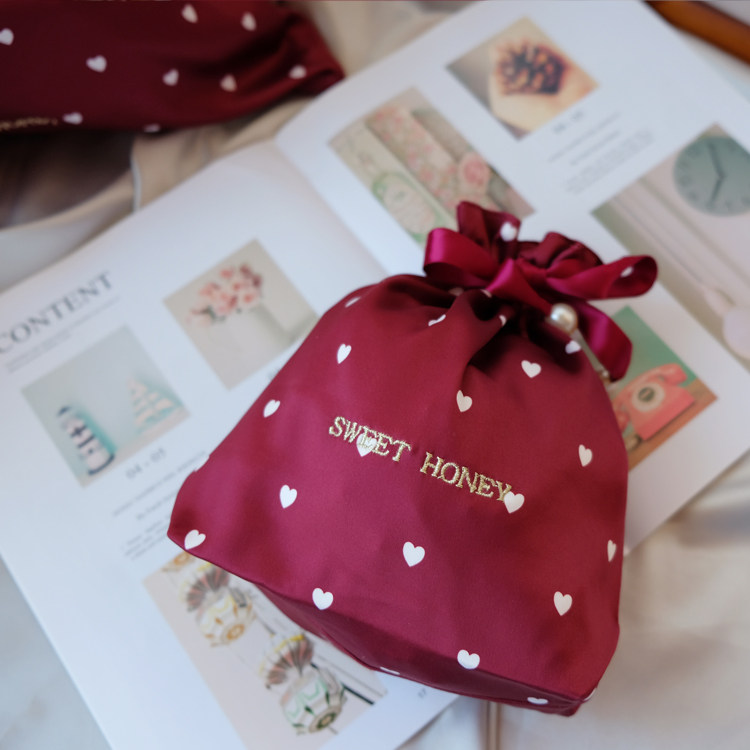 Japanese sweet lovely printed pearl silk snow beam pocket makeup bag for portable collection