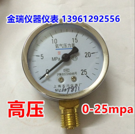 Oxygen pressure meter 0-25mpa high pressure oxygen pressure meter 0-2 5mpa low pressure