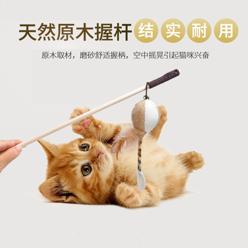 Wooden teasing stick (small spherical) unbespoke wooden teasing cat stick (small spherical) send laser teasing cat pen fire leg bowel garbage bag