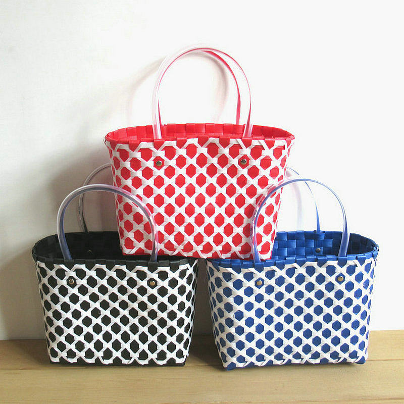 New Grid Weaving Shopping Basket Small Vegetable Basket Garden Storage Basket Handbag Candy Color Cute Handbasket