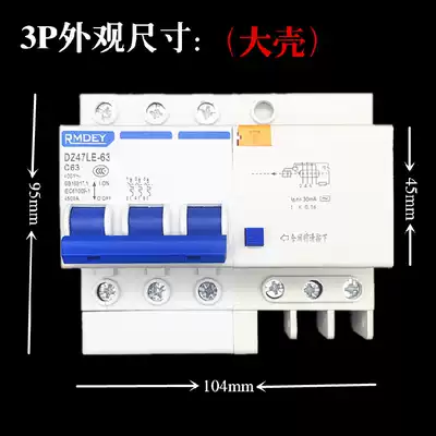 Large shell Shanghai civil anti-leakage switch leakage protector circuit breaker household DZ47LE3P63A large hole