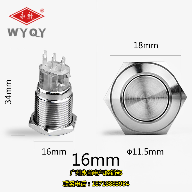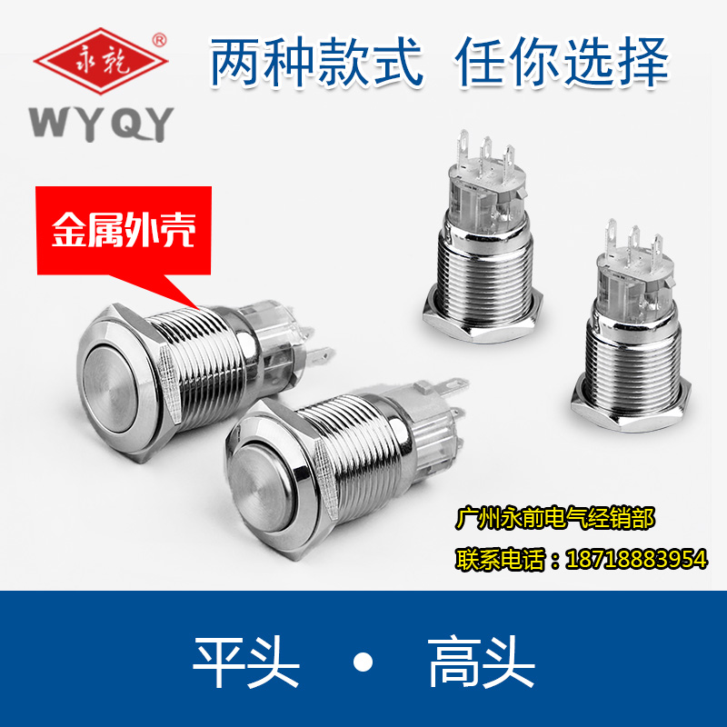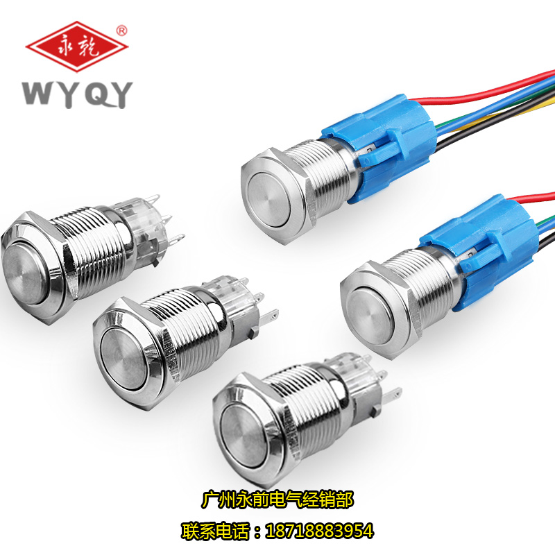 16 19MM metal push button switch self-reset self-locking position waterproof welding foot with wire style