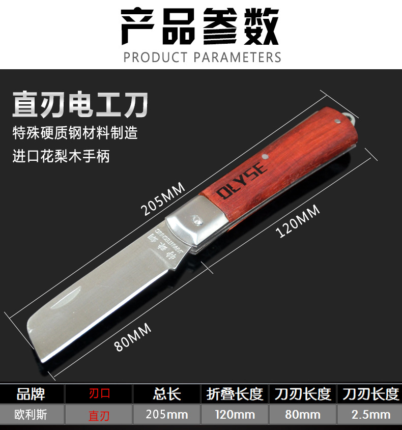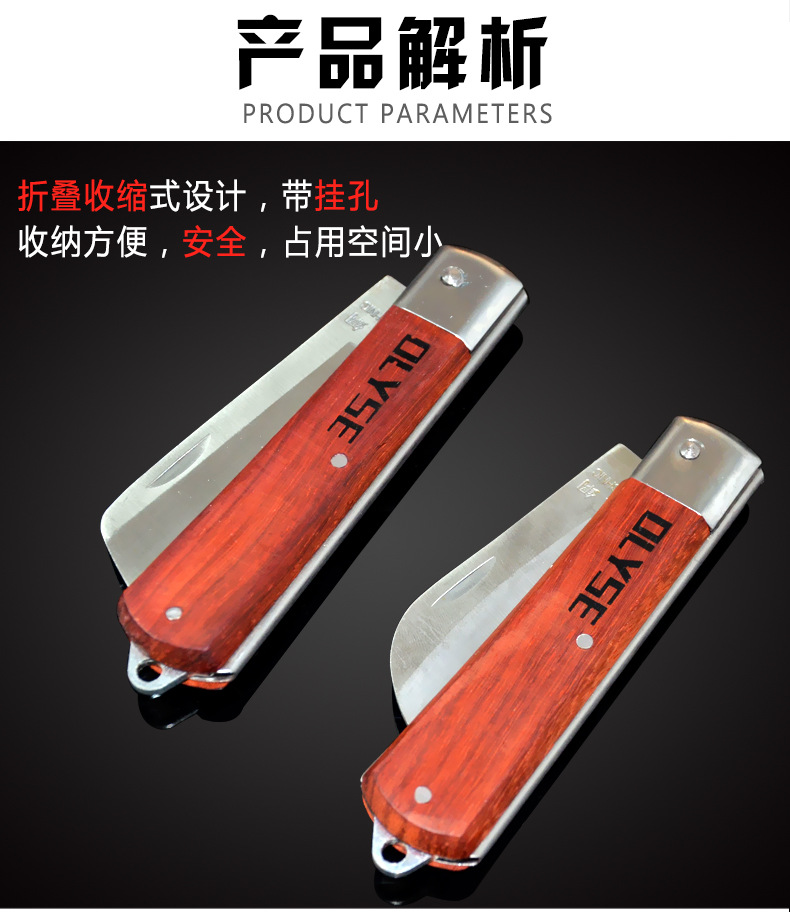 Electrician's knife wooden handle folding straight edge curved edge multi-functional special steel stripping knife wire knife tool