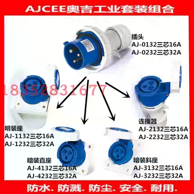 Plug AJ-0132 three-core 16A surface mount seat AJ-1132 three-core 16A connector AJ-2132 three-core 16A concealed oblique seat AJ-3132 Three-core 16A