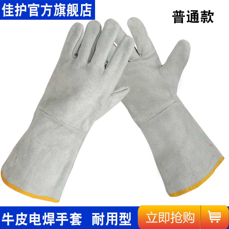Jiagu long version of full cowhide welding gloves Welder welding machinery reinforcement plus durable high temperature insulation gloves