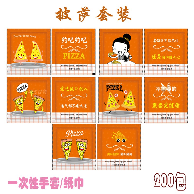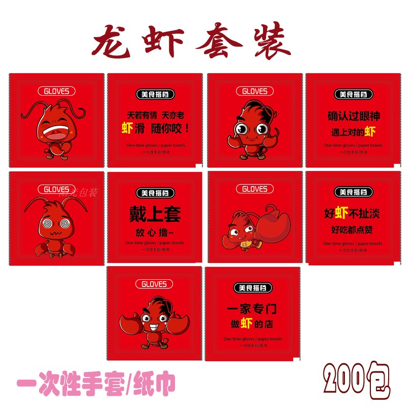 Thickened independent small package disposable glove paper towel toothpick set catering takeaway lobster pizza custom LOGO