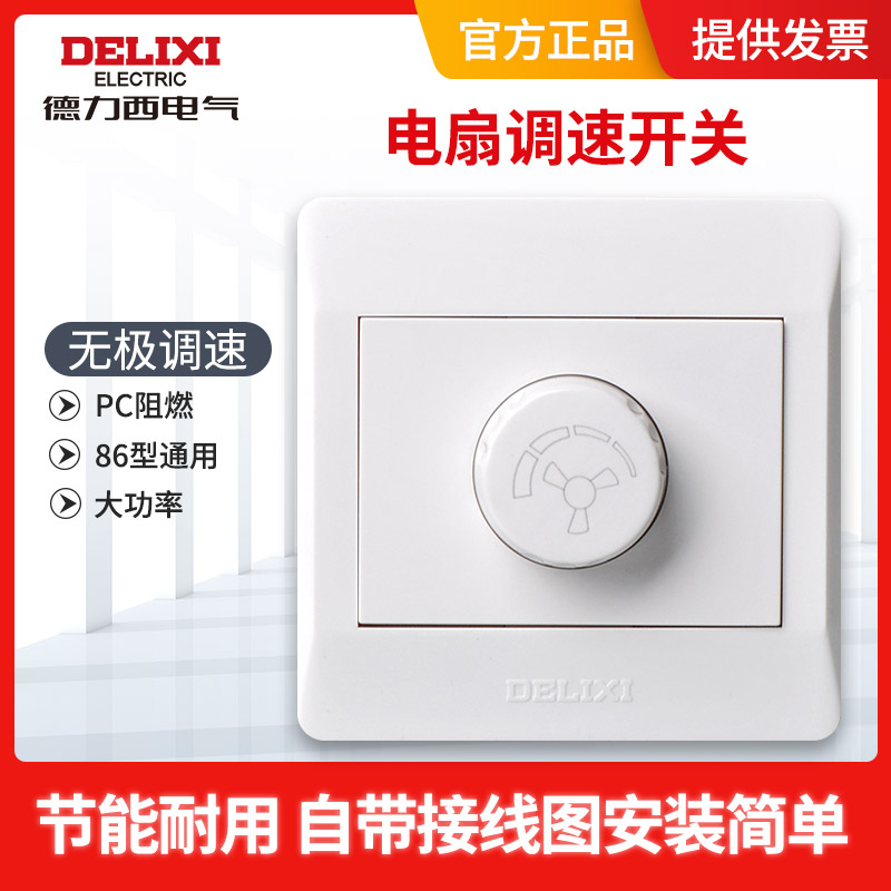Delixi electric fan speed control switch Household 220V concealed 86 panel ceiling fan knob speed controller stepless variable speed