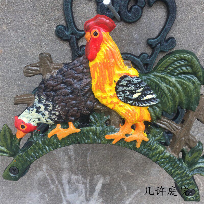 Retro cast iron rooster water pipe rack Painted courtyard storage bracket gardening rack Garden villa wrought iron wall decoration