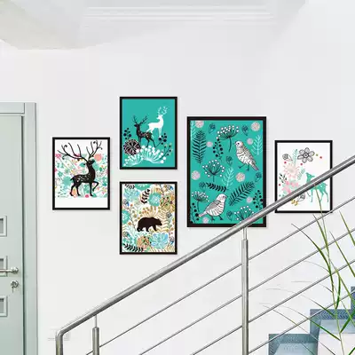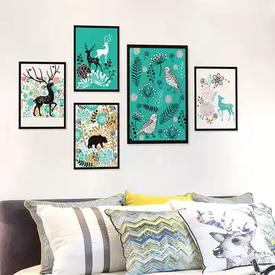 Forced chandelier forest hand-painted animal photo frame forest hand-painted animal photo frame forced chandelier colorful light bulb chandelier personality chandelier new Nordic style picture frame Deer City sketch stack elk Red