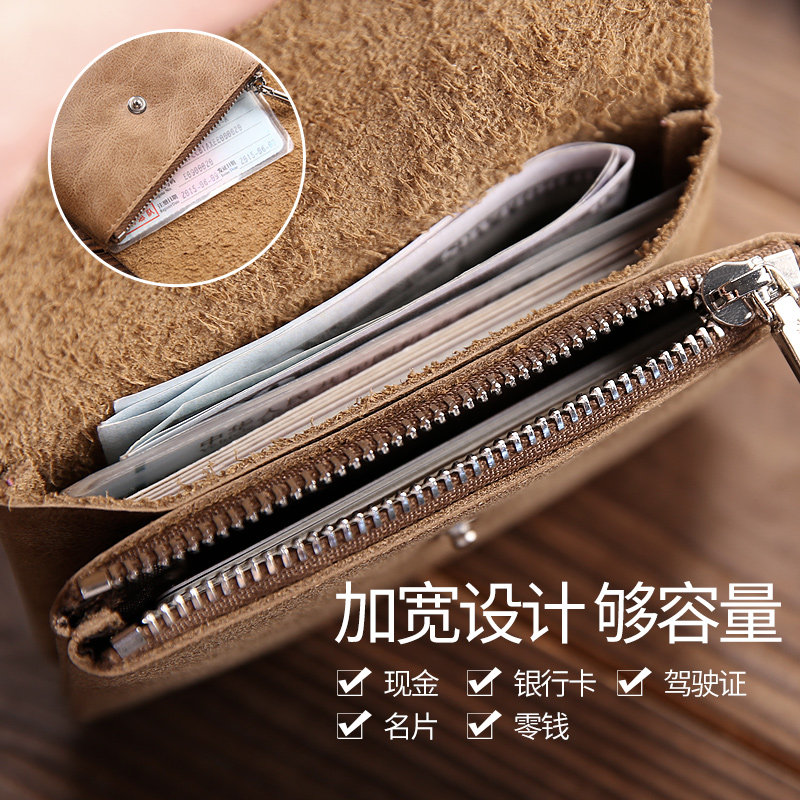 Card Bag Men Genuine Leather Card Clip Versatile Retro Pull Chain Zero Money Bag Han Bull Leather Large Capacity Men Business Name Sheet Clip