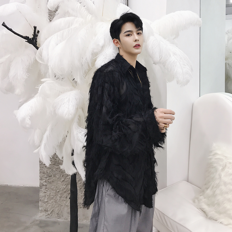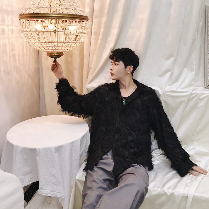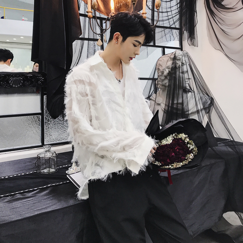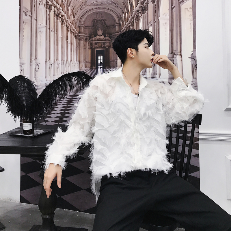 Fall Designer Handcrafted Solid Feather Fabric Small Jacket Chic Delicate Long Sleeve Shirt Tide Man Lovers Shirt