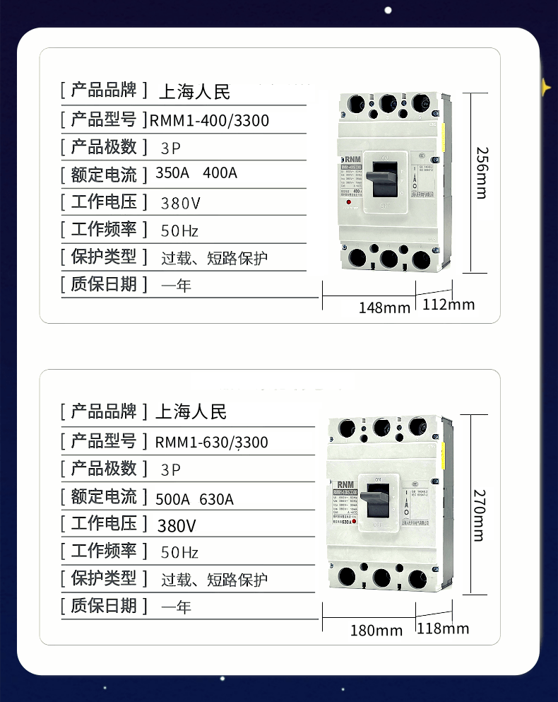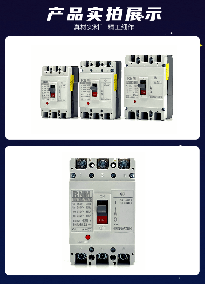 Shanghai People RCM1 plastic shell breaker RMM1-125S 3300 100A250A400A630A 2P3P4P