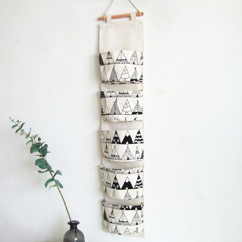 Student dormitory dormitory fabric storage hanging bag wall hanging storage bag half-circle five-pocket toy underwear storage hanging bag
