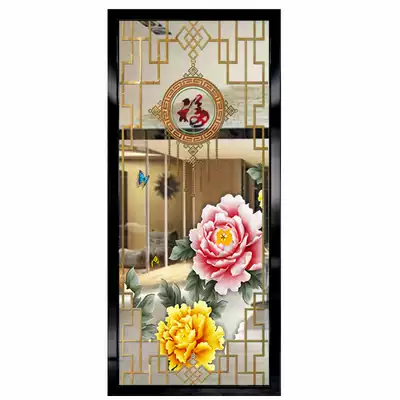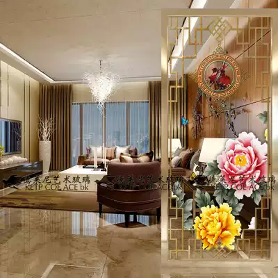 Art glass living room screen partition Entrance background wall entrance aisle shoe cabinet sliding door Modern light luxury peony blessing