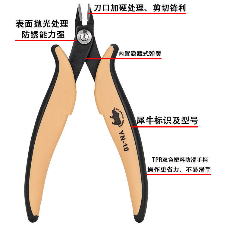 Original Japanese rhinoceros RHINO imported YN-10 Ruyi oblique pliers wire cutters YP needle-type fine-nose pliers 6 inches