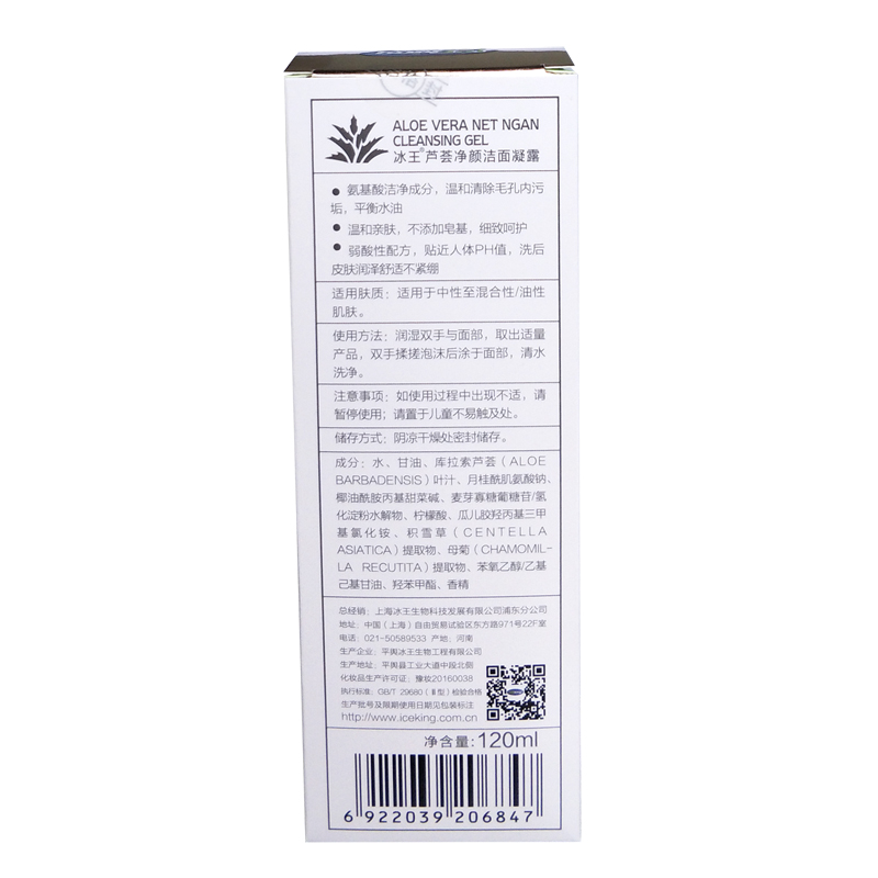 Ice King Aloe Vera clean face Cleansing Face Milk Moisturizing Moisturizing Deep cleaning pores Men and women Control Oil 120ml