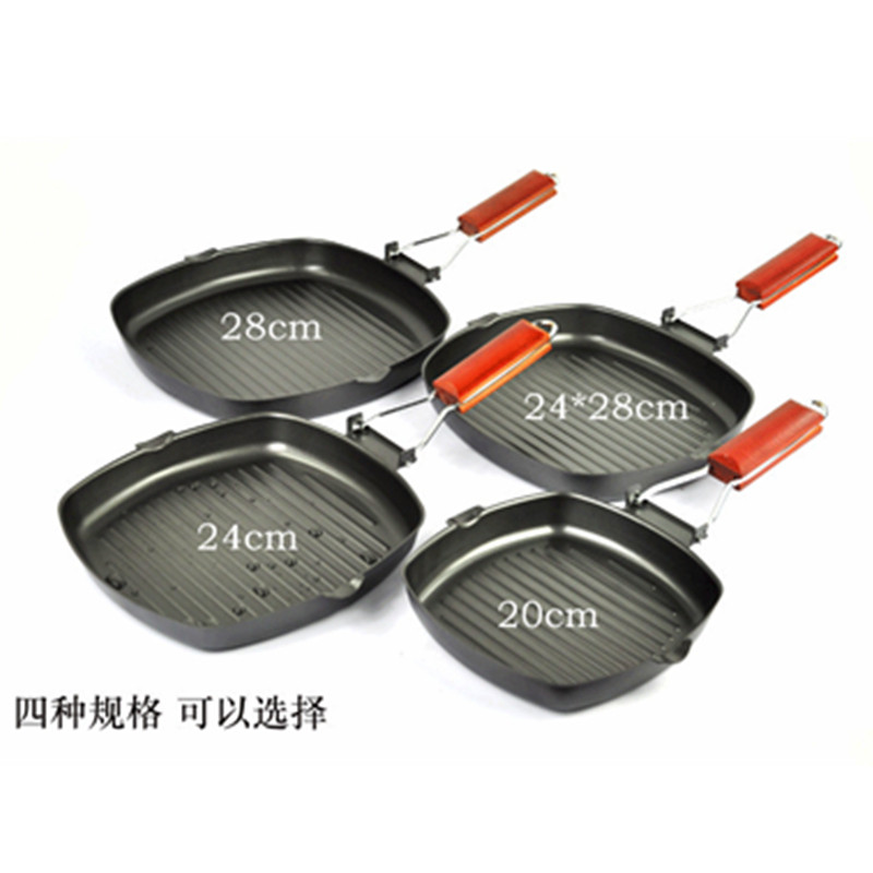 Outdoor Home Passbook Stacked Steak Pan Striped Flat Bottom Pan Frying Pan Frying Steak Special Pan Without Pan Gas Induction Cookers