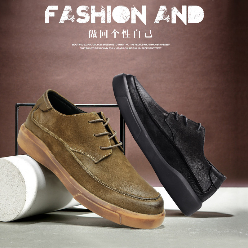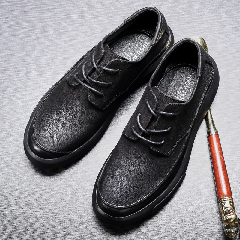 Leather shoes men's British trend matte retro shoes men's business casual shoes round toe lace-up 2022 autumn men's shoes