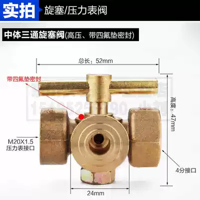All copper high pressure thickening pressure gauge three-way cock valve boiler copper cock with exhaust hole 4 minutes M20x1 5