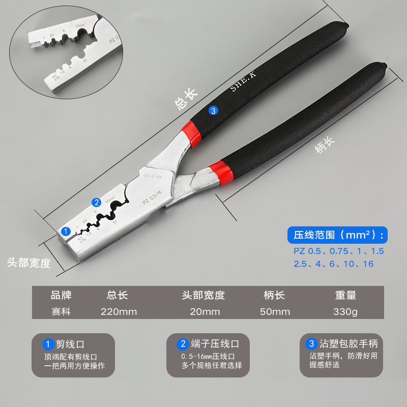 Seko tubular terminal crimping pliers 0-5-16 square pressure moulded block mesh route cold pressure terminal pliers wiring terminal pliers