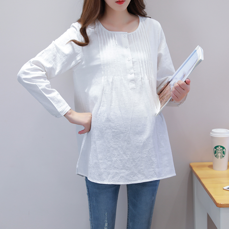 2021 autumn maternity clothes round neck long sleeve short maternity T-shirt Spring and autumn inner match shirt tide mother loose top