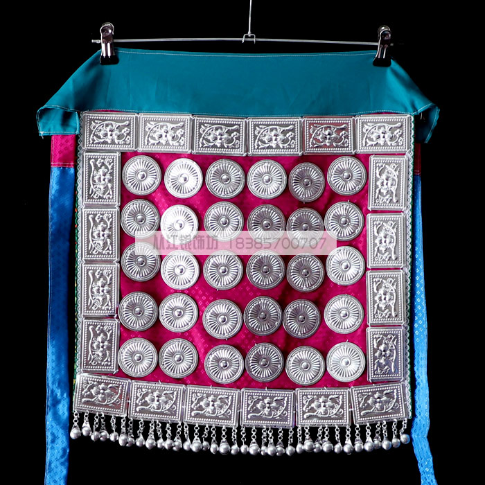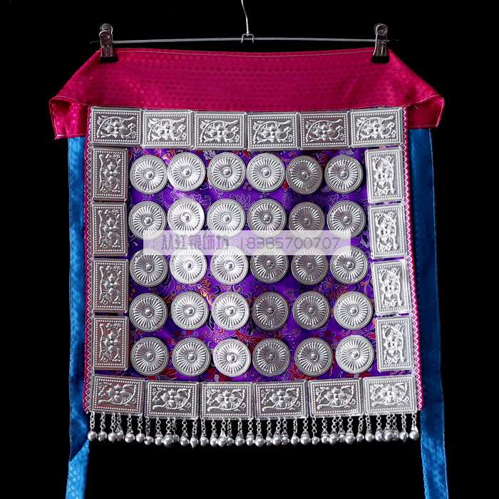 Guizhou Dong ethnic dress Dress Waistline Silver Accessories Apron Ethnic Minority Traditional Dress Performance Clothing Retro Stage