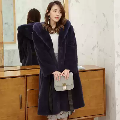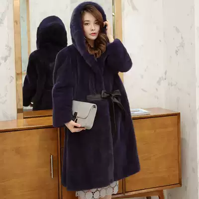 Haining 2021 new imported mink fur slim coat fur coat female whole mink medium long version hooded