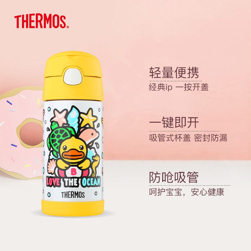 THERMOS stainless steel children's thermos cartoon straw cup Learning cup F4011 Big yellow duck Fisher