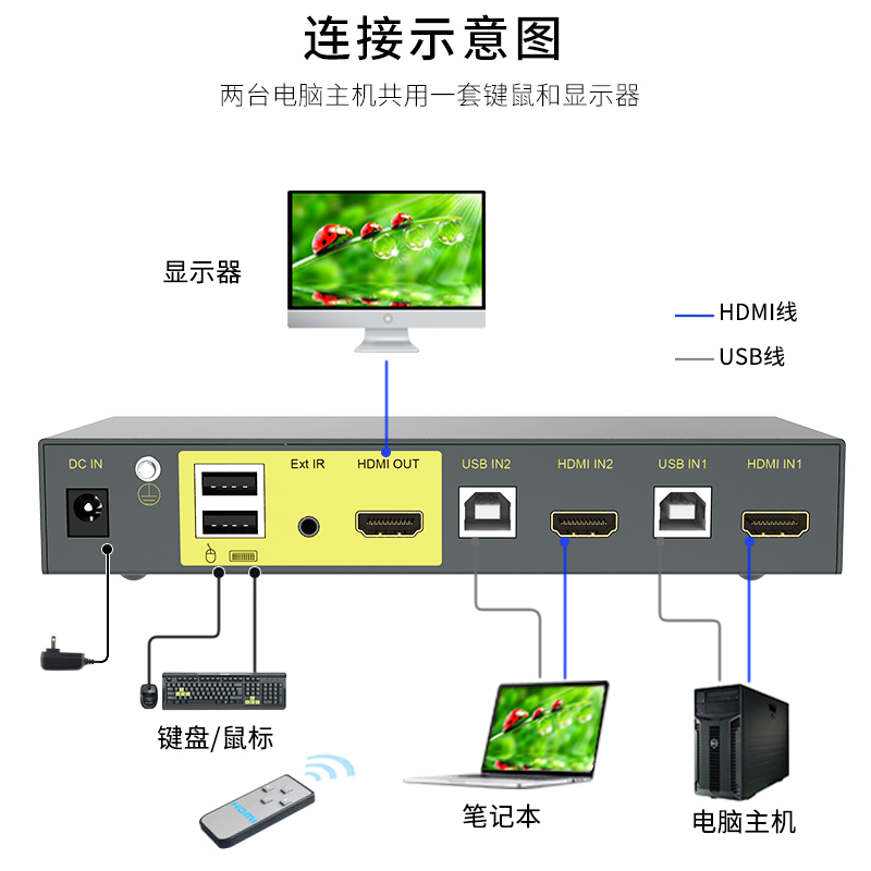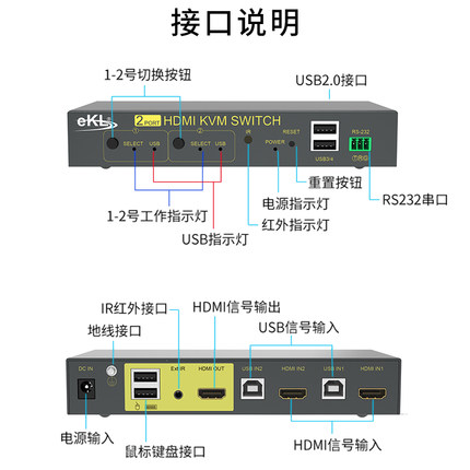 EKL KVM switch HDMI automatic 2 port USB2 in 1 out display Keyboard mouse printer sharer
