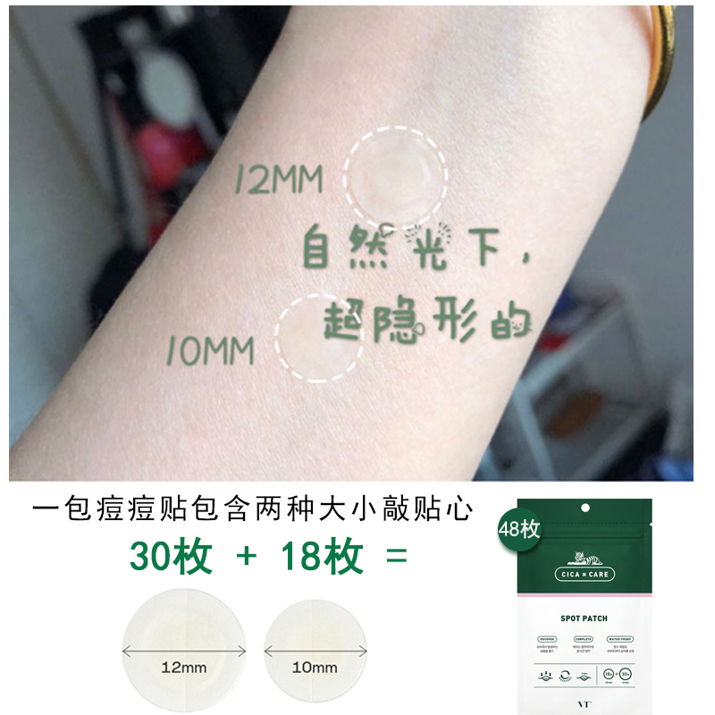 South Korea VT stealth pimple sticker tiger CICA repair to pimple to acne closure with up-makeup ultra-thin 48 pieces