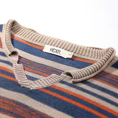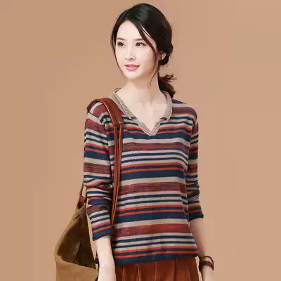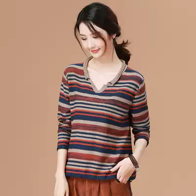 Han Chao Xingren loose V-neck sweater women spring and autumn clothes 2021 New retro stripes base Korean wool sweater