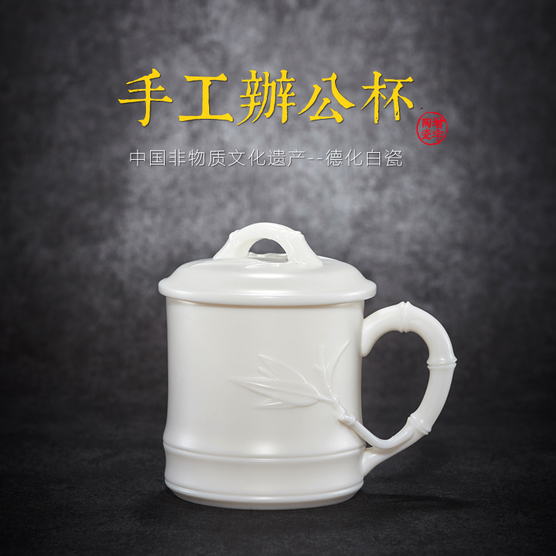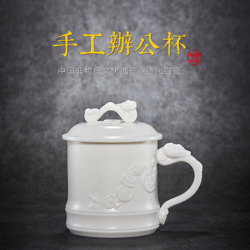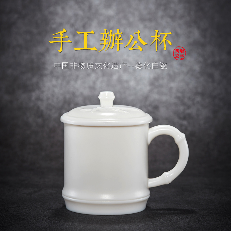 Dongjia original pure handmade Dehua white porcelain office cup with lid personal cup president master cup mutton fat jade tea cup