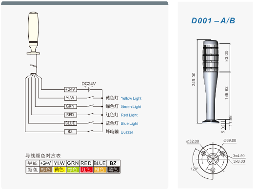 SIRONN Wins Blue LED Three Color Machine Tool Signal Indicator Light Beep Alarm 24V Automation Equipment Lamp D001-A