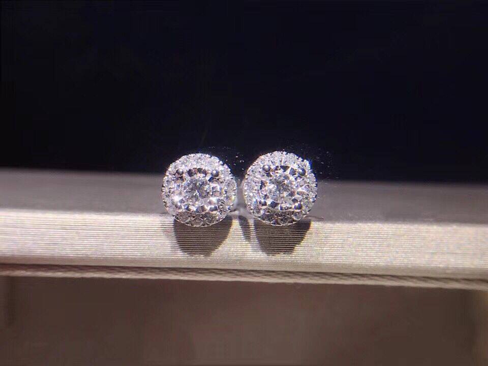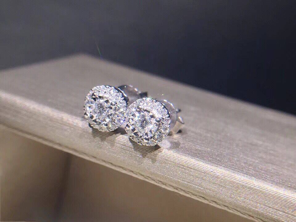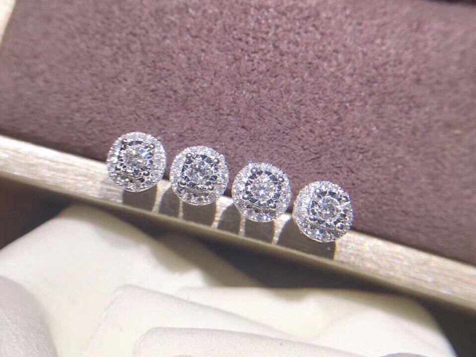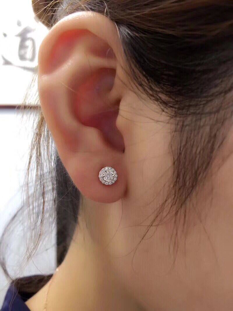 White 18K gold 1 carat effect diamond ear nail group inlaid with diamond earrings with 18K gold ear plug