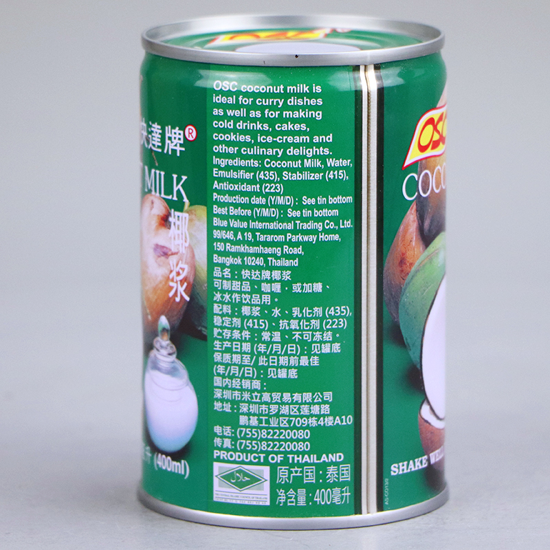 Thailand imported OSCS fast brand imported coconut milk 400ml * 6 cans of concentrated coconut milk sago sweet sauce baking raw materials