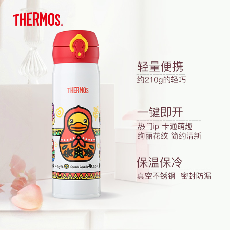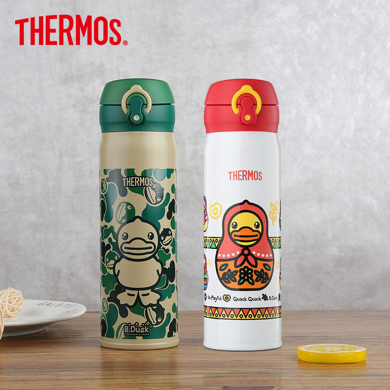 THERMOS Lunch Magician Cartoon Stainless Steel Vacuum Insulated Cups Flower Cups Yellow Duck JNL-500 ml KT