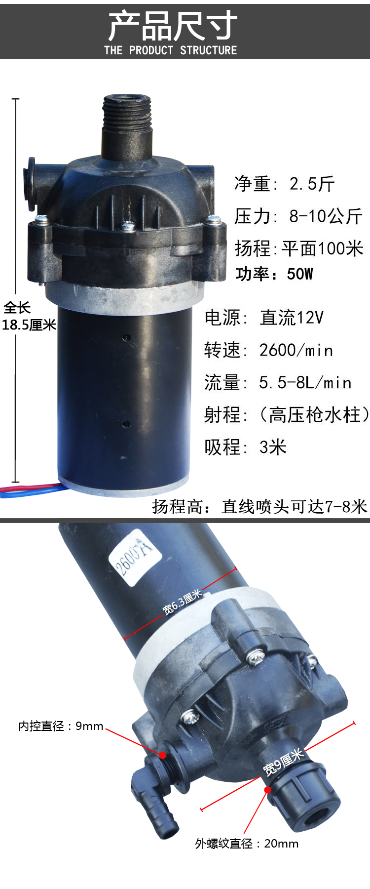 2600 high power high pressure diaphragm pump beating drug spray 12V agricultural electric sprayer washing machine small water pump-Taobao