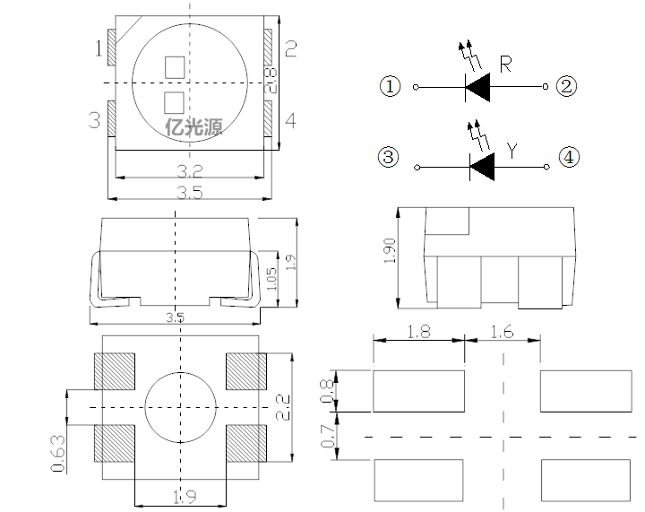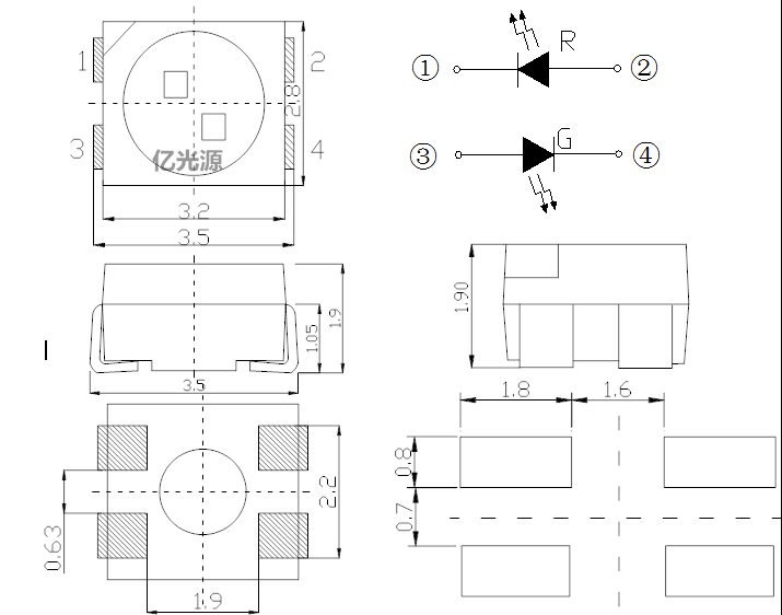 3528 1210 Ultra bright red and blue double red and yellow red and green double color red and white bicolor anode opposite