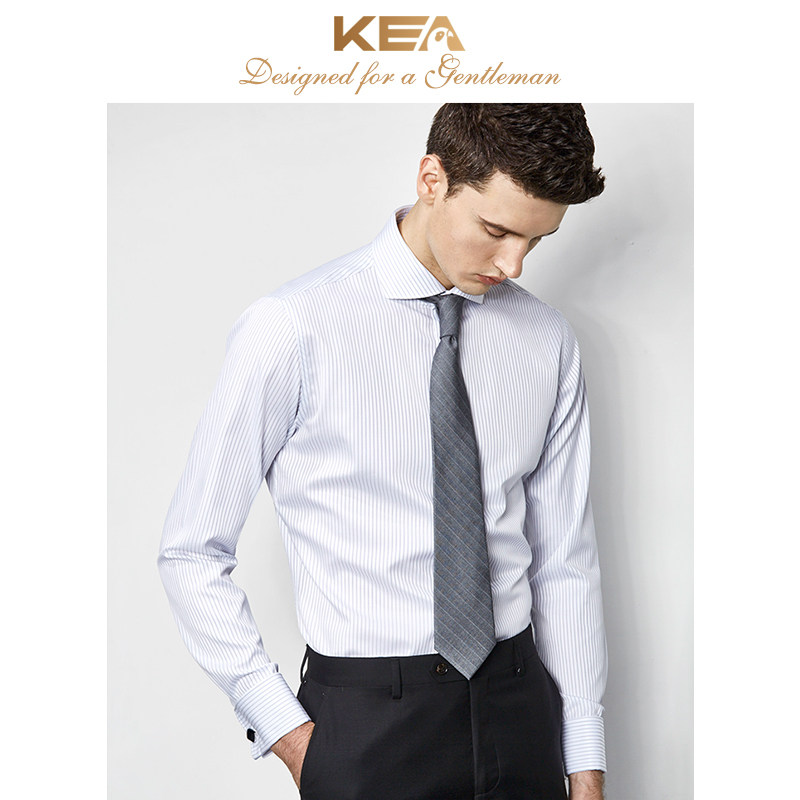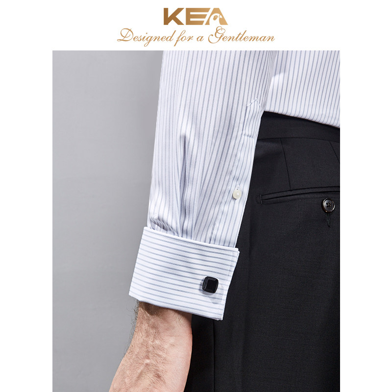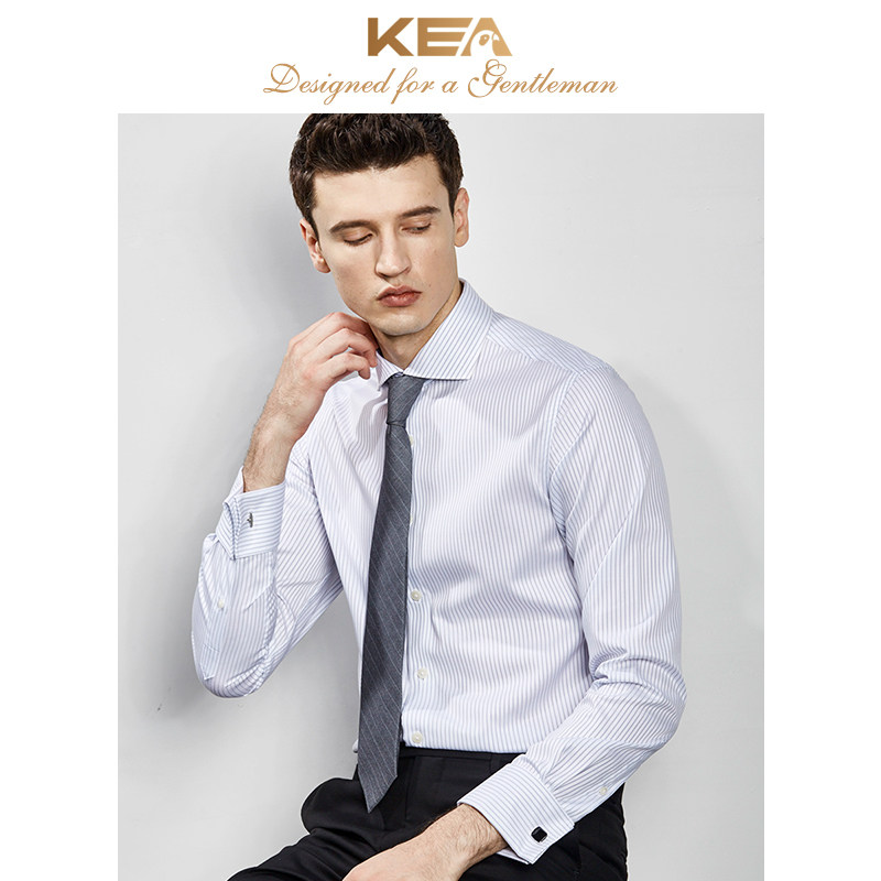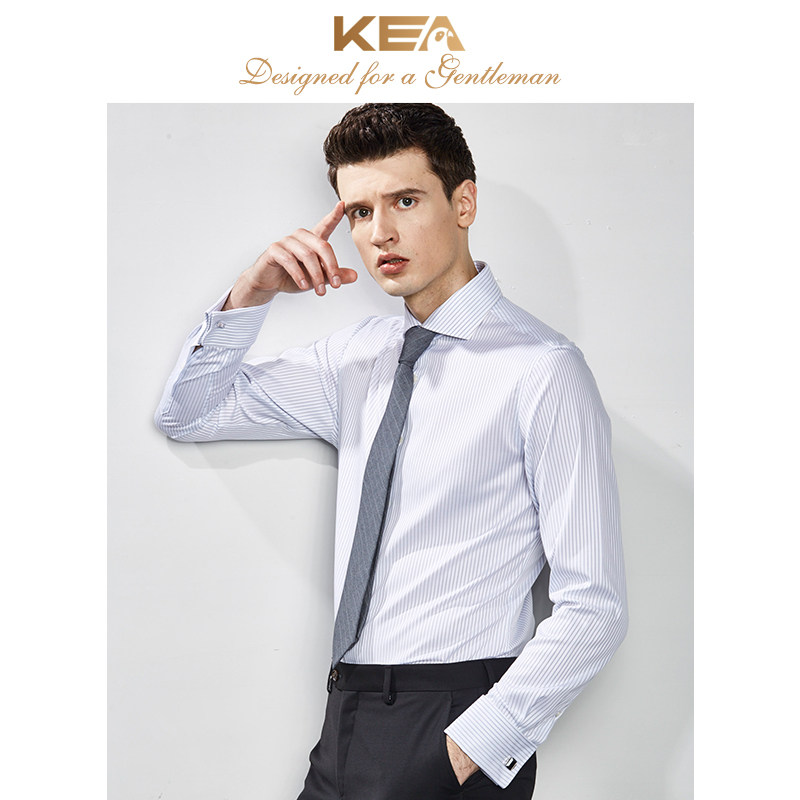 KEA shirt men's long-sleeved striped slim fit business casual men's shirt cotton free ironing formal French shirt men