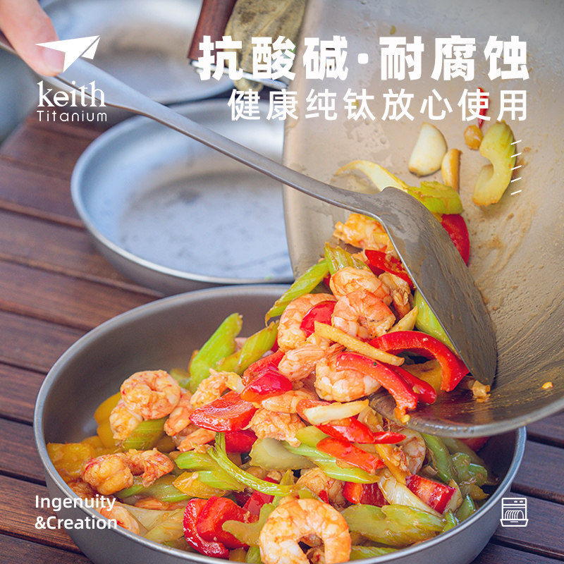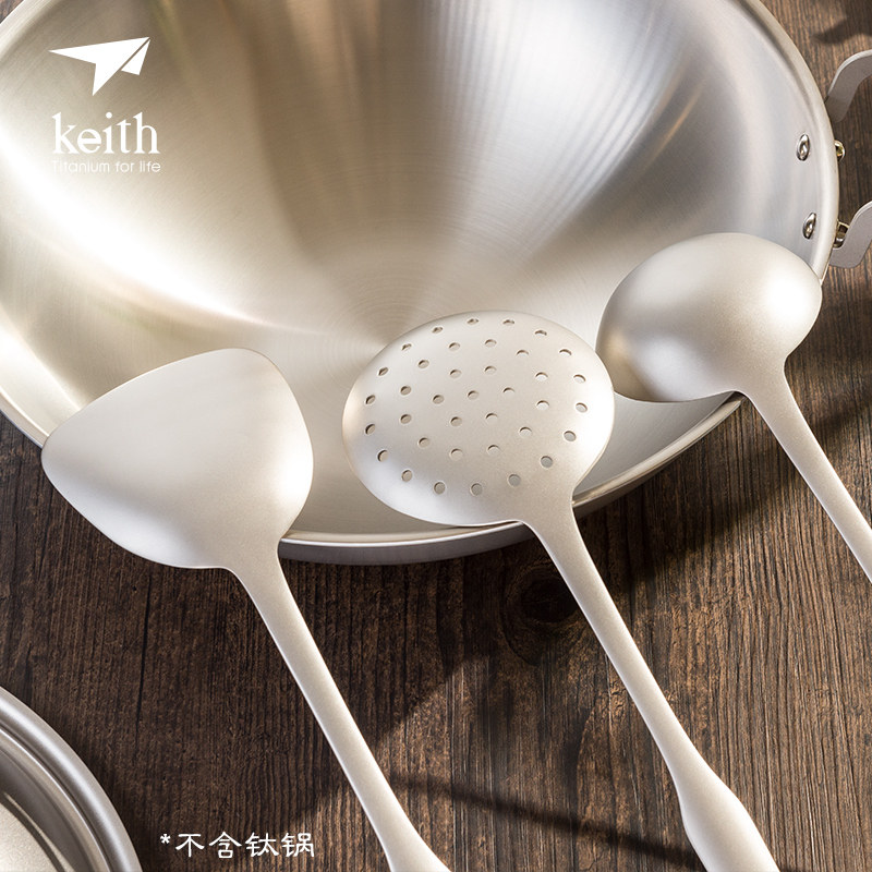Keith Armor pure titanium kitchenware new long handle anti-scalding titanium soup spoon colander Stir-fry shovel Spatula three-piece set