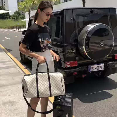 New travel grid travel bag female hand shoulder Korean version travel travel luggage boarding short-distance clothing bag