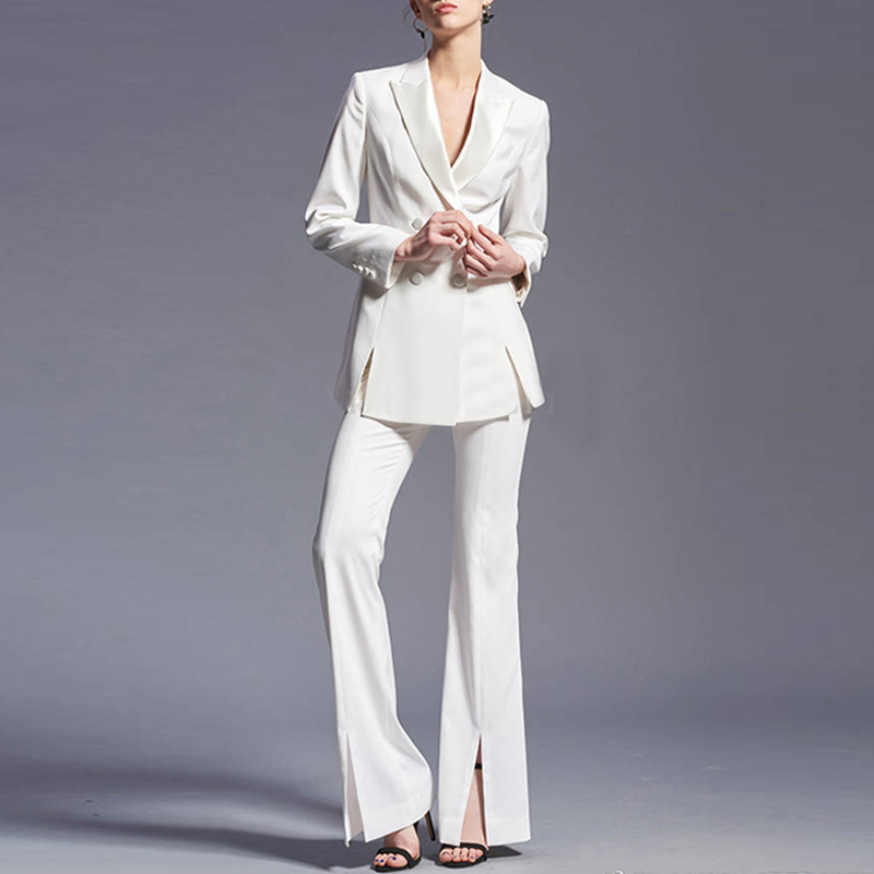 Spring and autumn 2020 new OL commuter fashion small suit jacket temperament slim micro flared pants white suit two-piece suit
