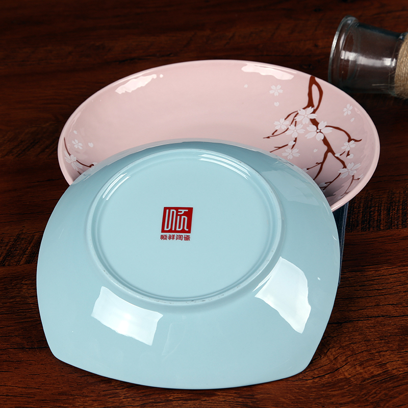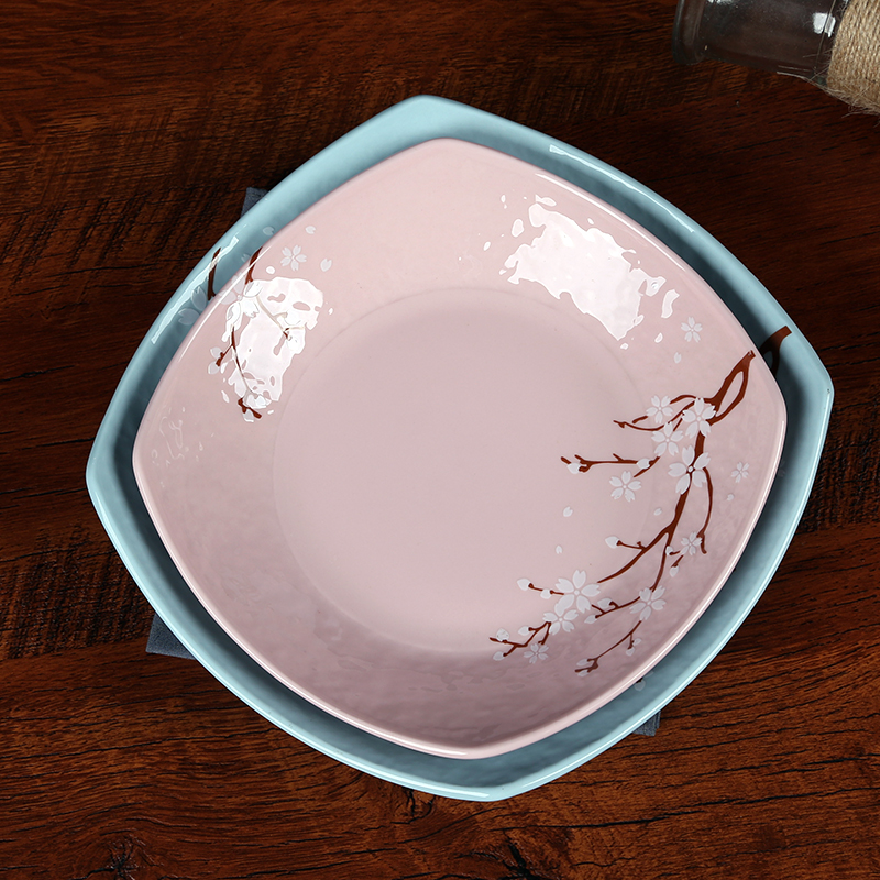 Shunxiang Ceramic Plate Home Deep Dish Dish Soup Plate Disc Square Dish Japanese Creative Porcelain Pink Blue