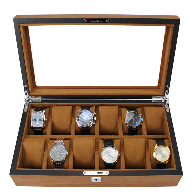 High-grade wooden watch box simple collection box men and women's mechanical watch box with lock large capacity household