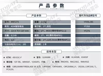 MBTZ7S large capacity lead-acid battery MPLX7U-P lithium battery MTZ6S gel battery MBTZ7S MB-VM detector package 1 USZ7