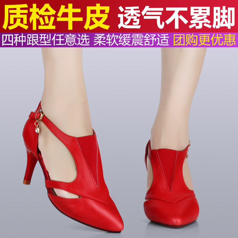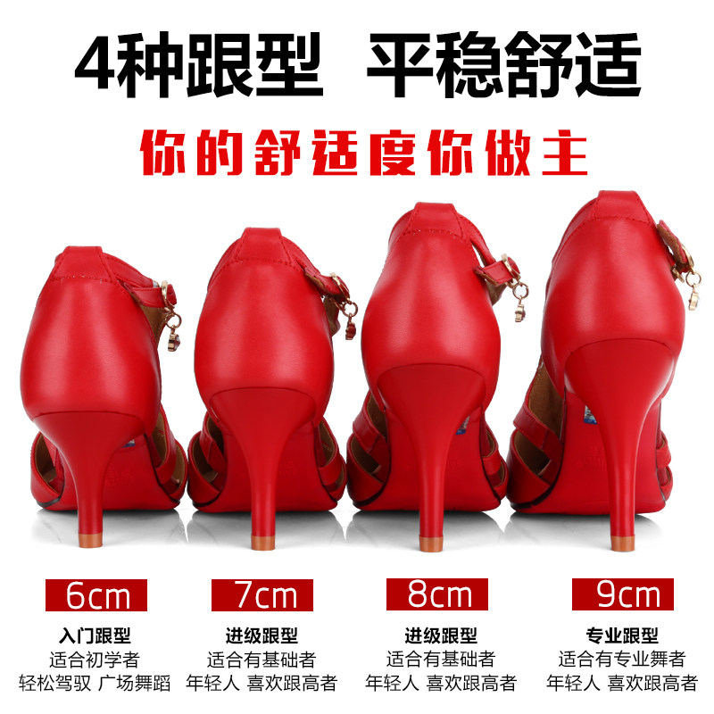 Women's Latin dance shoes soft-soled leather mid-heel high-heeled women's professional square social red dancing dance shoes new