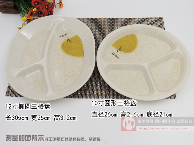 Kebai Yafu Guifu Bamboo melamine fast food tray Multi-division Dinner Plate Imitation Porcelain Cutlery Plastic Buffet Dish Canteen Dinner Plate
